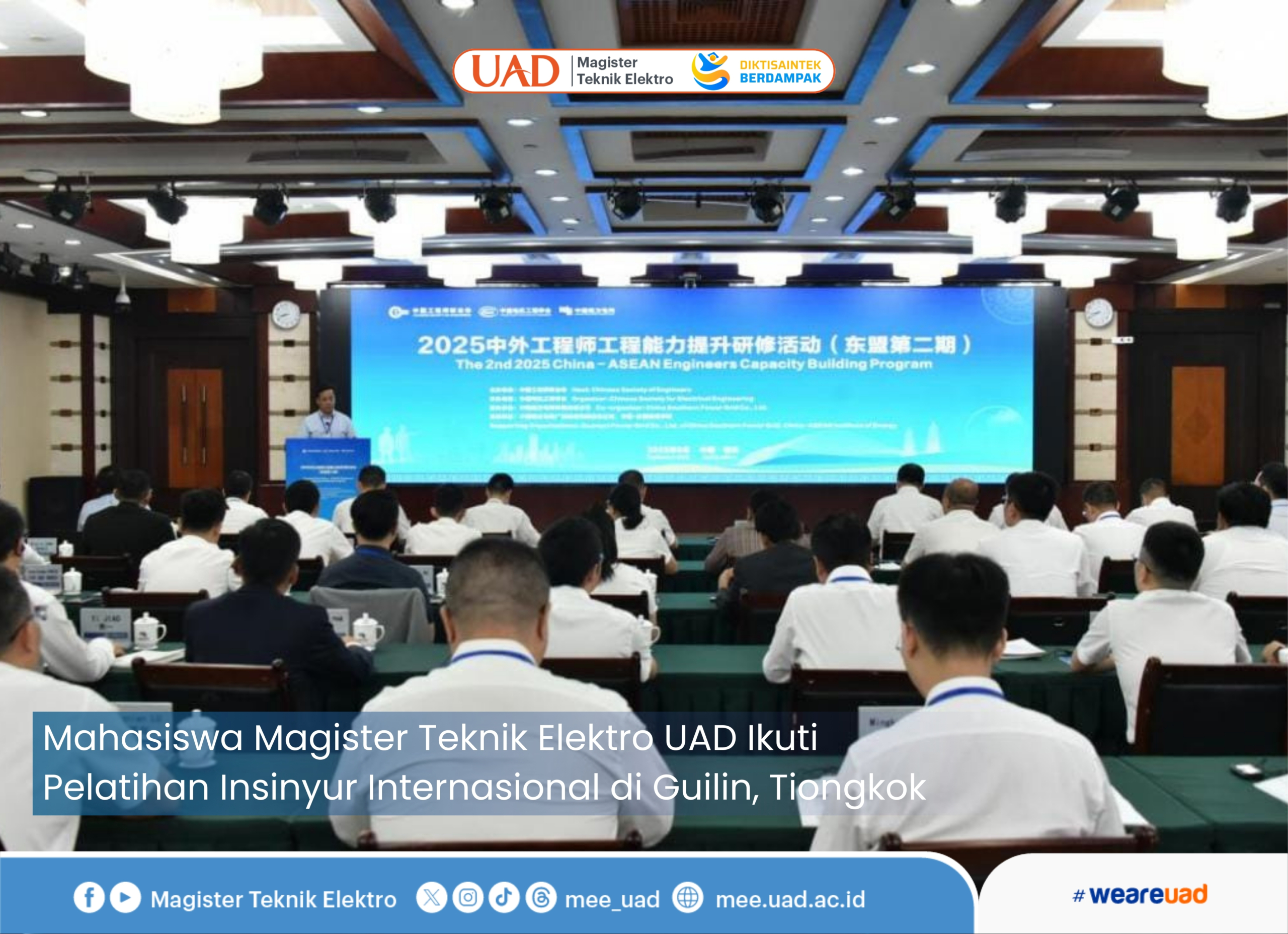 Guilin, Tiongkok, 1–6 September 2025 — La Iman, mahasiswa Magister Teknik Elektro Universitas Ahmad Dahlan (UAD), turut berpartisipasi dalam Kegiatan Pelatihan Peningkatan Kapasitas Insinyur Tiongkok dan Asing (ASEAN Tahap II) Tahun 2025 yang sukses diselenggarakan pada 1–6 September 2025 di kota Guilin, Guangxi, Tiongkok.